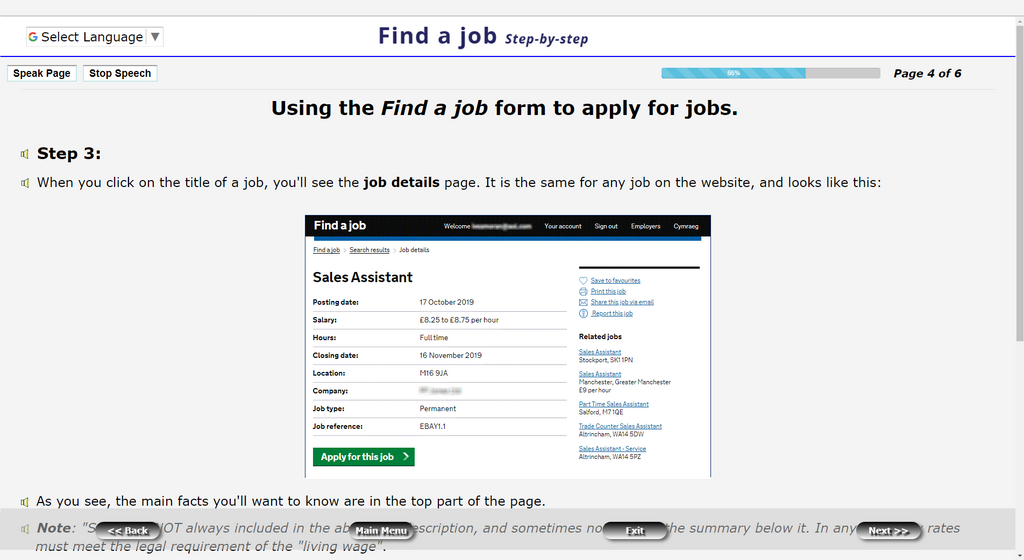 Find a job – step-by-step: A guide to the government’s Find a job system that takes you through the steps of setting up your account and managing it. Other useful areas like covering letters and creating CVs (with templates) and searching for jobs are also covered.