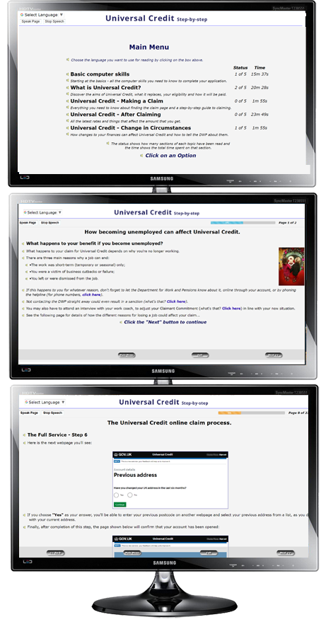 Universal Credit – step-by-step: A guide that helps users navigate the Universal Credit system which takes you through the steps of setting up your account, how much will be paid and when it will be paid. Other useful areas like budgeting and, for those new to computing, basic computer skills are also covered.